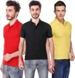 Men’s Polo Neck Half Sleeve Casual Tshirt Combo of Red, Black, Yellow colors (Pack of 3)