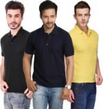 Men’s Polo Neck Short Sleeve Casual Tshirt Combo of Dark Blue, Black, Yellow colors (Pack of 3)