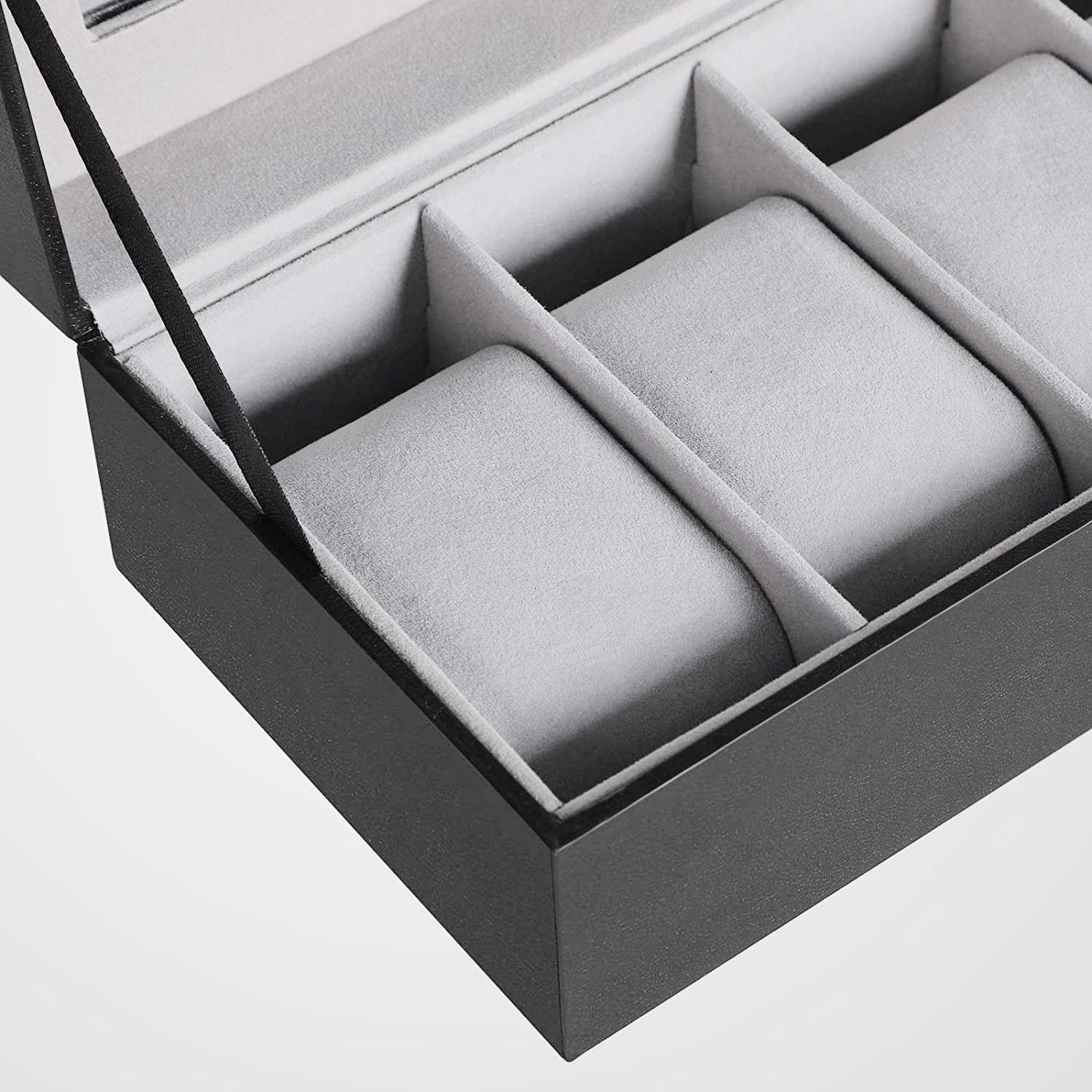 Presents Luxury 6 Slot Watch Box for Men & Women Lockable Leather Watch Organizer with Glass Lid, Soft Velvet Cushions, Premium Display & Storage Case for Watches (Black)