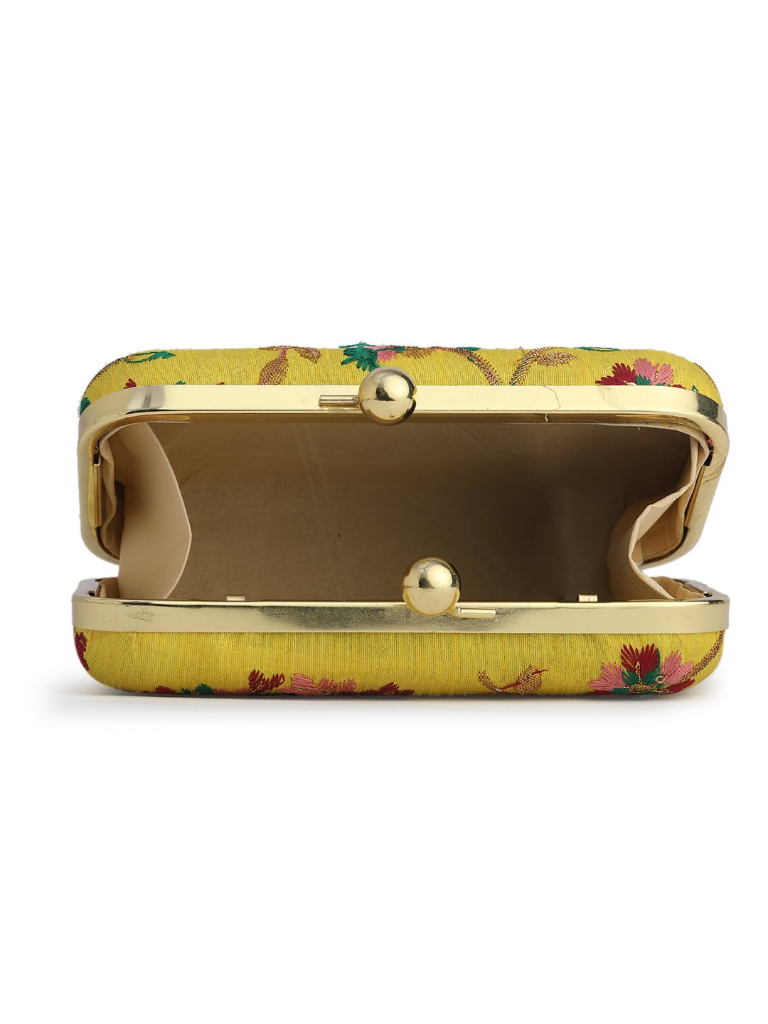 Yellow & Pink Embroidered Box clutches, Has gold chain shoulder strap, 1 main compartment with twist closure